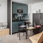 Goście mogą przygotowywać posiłki w pełnowymiarowej kuchni lub zjeść je w w jadalni. Kuchnia wyposażona jest w czajnik elektryczny, lodówkę i przybory kuchenne. Restauracja La Tourelle Saint Loup leży w odległości 15-minutowego spaceru. Najbliższy przystanek autobusowy to Hopital, w niewielkiej odległości od obiektu.